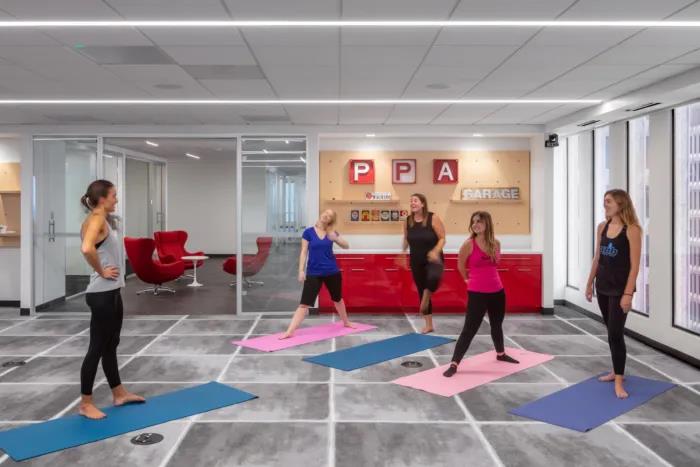 改造的另一個目標是創建指定替代工作人員設置和公共空間。經常令人垂涎的角落辦公室房地產是分配給這些員工共享空間,確保全公司的焦點總是在最前列。這些空間支持部門會議和表達PPA的獨特的企業文化和員工的個性。一個多功能的房間主持董事會會議、全體會議和雙打作為一個工作室員工早餐和瑜伽課程。